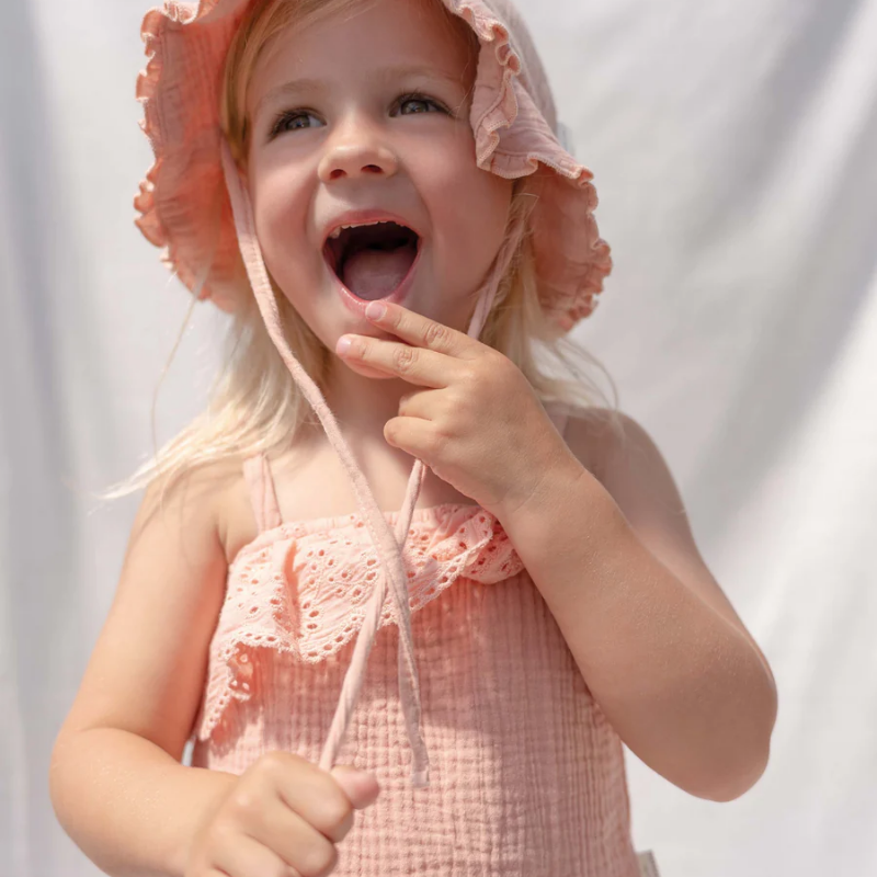 بلوزة موسلين مطرزة بكشكشة - وردية زهرية