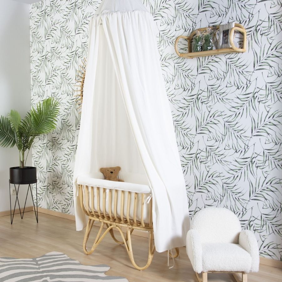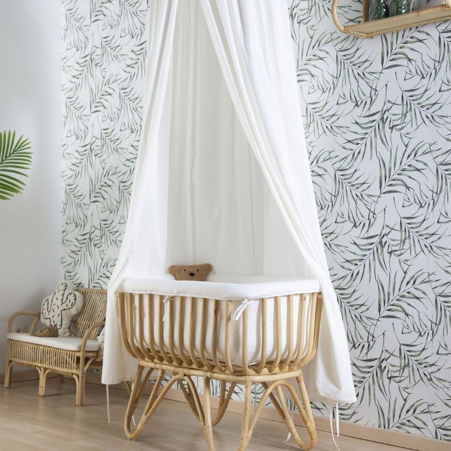 سرير من الخيزران 80×40 + مرتبة + غطاء أبيض فاتح بني