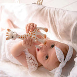 A perfect new baby gift! An easy to grasp teething ring, made of 100% natural rubber to help soothe baby during teething. PRODUCT FEATURES Sophie la girafe, baby's first toy in 100% natural rubbe...